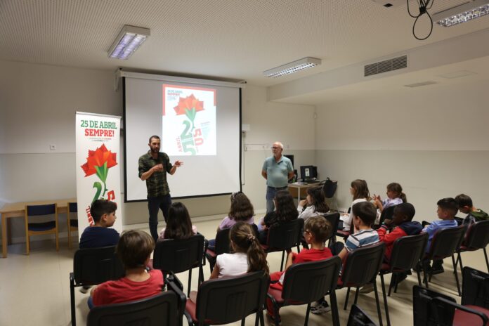 Durante a sessão, foram mostradas diversas imagens da época, permitindo aos alunos uma melhor compreensão das vivências socioculturais do período do Estado Novo. Esta abordagem visual ajudou a ilustrar o conhecimento transmitido, aproximando os mais novos das memórias históricas e culturais da sua comunidade.