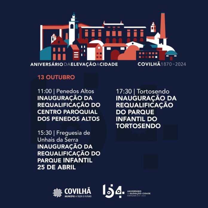 Programa das Inaugurações As celebrações incluem a inauguração da Requalificação do Centro Paroquial dos Penedos Altos, seguida pela requalificação dos Parques Infantis de Unhais da Serra às 15:30 e do Tortosendo às 17:3012.