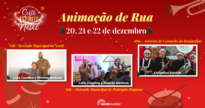 No domingo, dia 22, também pelas 11 horas, este duo multifacetado dará outro ânimo ao Mercado Municipal de Pedrógão Pequeno. Já na segunda-feira, dia 23 de dezembro, a partir das 10 horas, o conjunto “Christmas Friends” percorrerá as ruas da vila de Cernache do Bonjardim, trazendo alegria e animação.