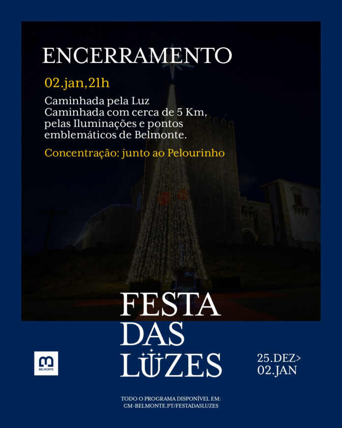 A Festa das Luzes em Belmonte chega ao fim no dia 2 de janeiro com um evento especial: uma “Caminhada pela Luz”. Este percurso, com cerca de 5 km, levará os participantes a explorar as iluminações e os pontos emblemáticos da vila histórica.