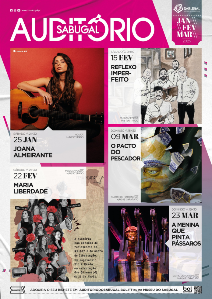 O Auditório Municipal do Sabugal preparou uma programação diversificada para os meses de janeiro, fevereiro e março, com espetáculos de música, poesia e teatro de marionetas.