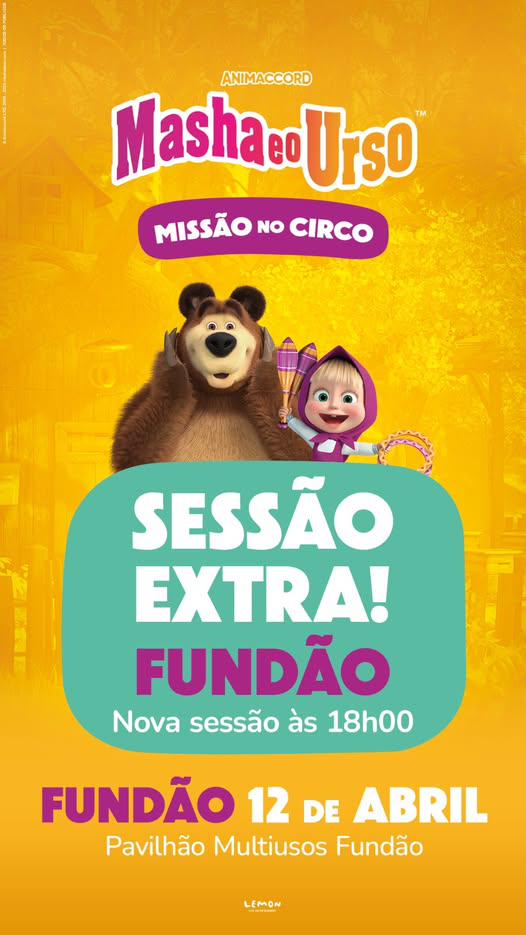 Devido à grande procura, “A Masha e o Urso – Missão no Circo” terá uma sessão extra no dia 12 de abril, às 18h00, no Pavilhão Multiusos.