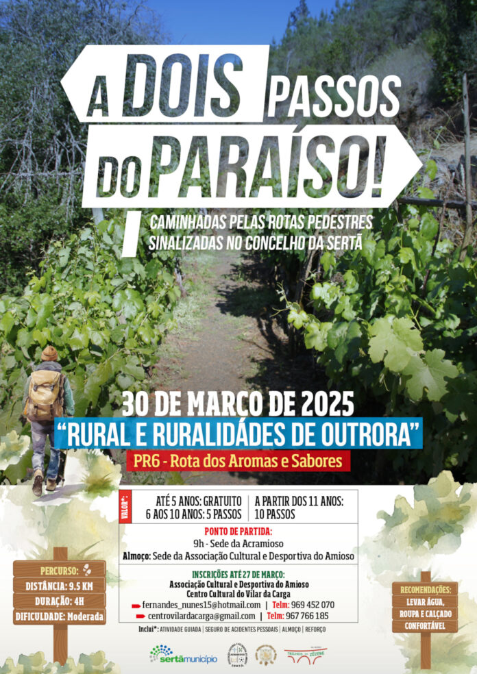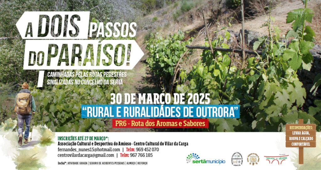 Este evento insere-se no Festival de Caminhadas “A Dois Passos do Paraíso”, promovido pelo Município da Sertã em parceria com associações locais. O festival teve início a 16 de março em Pedrógão Pequeno e prolonga-se até junho, com duas caminhadas mensais ao longo das rotas pedestres do concelho. O objetivo é proporcionar um contacto próximo com a ruralidade, o património histórico e cultural, bem como com a biodiversidade do território.