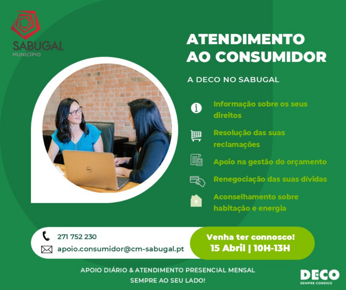 A DECO – Associação Portuguesa para a Defesa do Consumidor, em parceria com o Município do Sabugal, estará disponível para atendimento presencial no próximo dia 15 de abril, entre as 10h00 e as 13h00, no Centro Dr. José Diamantino dos Santos (edifício da Biblioteca Municipal).