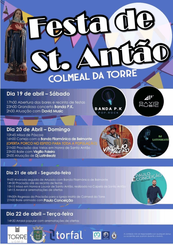 De 19 a 22 de abril, Colmeal da Torre recebe a tradicional Festa de Santo Antão, com um programa recheado de música, celebrações religiosas e animação para toda a população.