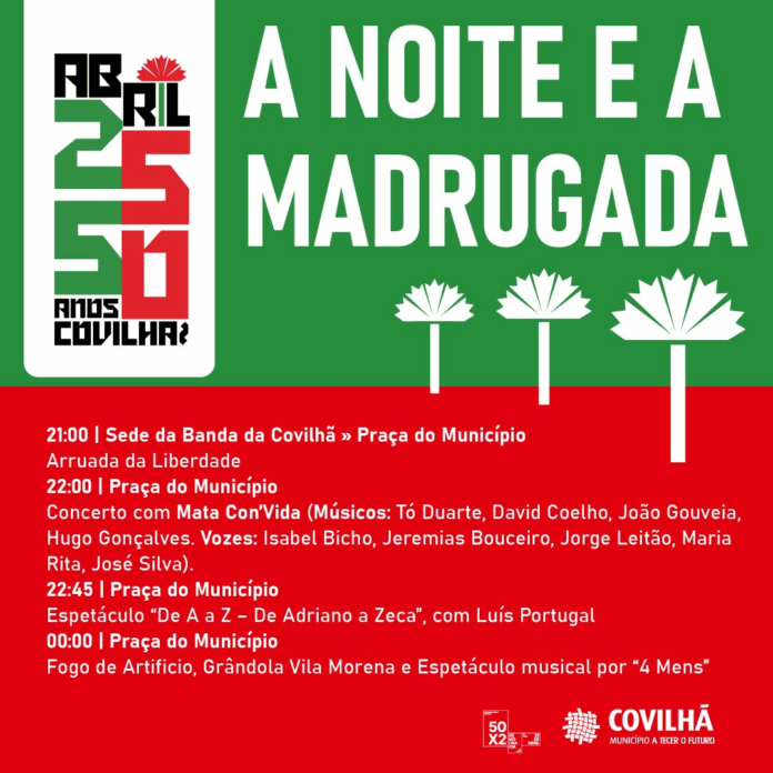 Este evento especial integra as comemorações dos 51 anos do 25 de Abril na Covilhã, um marco histórico que a cidade assinala com um programa abrangente de atividades ao longo do mês. “A Noite e a Madrugada” surge como um dos pontos altos destas celebrações, convidando todos os cidadãos a reviver e celebrar os valores da liberdade e da democracia conquistados há cinco décadas.