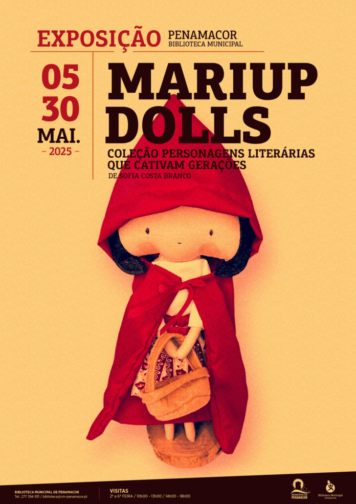 A Biblioteca Municipal de Penamacor acolhe, até 30 de maio, a exposição “Mariup Dolls”, uma coleção encantadora de bonecas e bonecos de pano inspirados em personagens da literatura infantil, da autoria de Sofia Costa Branco.