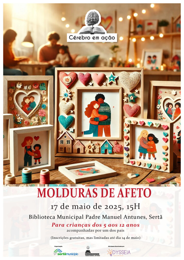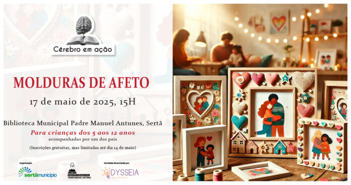 No próximo dia 17 de maio, pelas 15 horas, a Biblioteca Municipal Padre Manuel Antunes, na Sertã, recebe mais uma sessão da iniciativa “Cérebro em Ação”, desta vez dedicada à criação de “Molduras de Afeto”. A atividade insere-se nas comemorações do Dia da Mãe e do Dia da Família e convida as crianças dos 5 aos 12 anos, acompanhadas por um dos pais, a construir uma moldura familiar personalizada e a representar a sua própria família.
