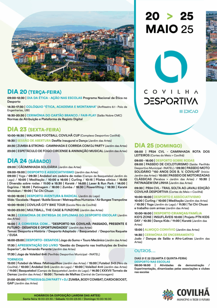 Com um programa diversificado e inclusivo, a Covilhã Desportiva volta a afirmar-se como um marco no calendário municipal, incentivando um estilo de vida ativo e saudável.