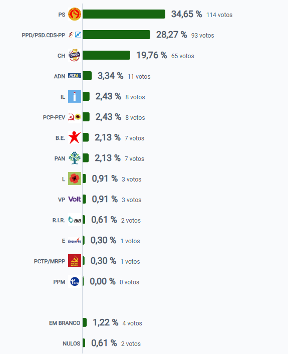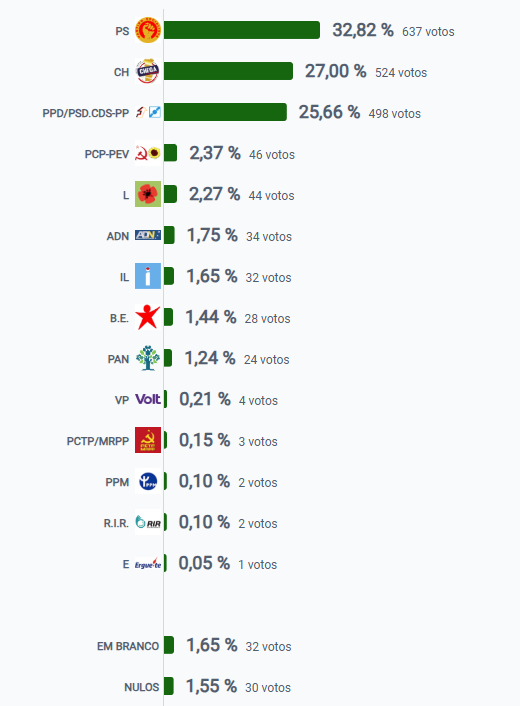 | Partido Socialista (PS) | 1.103 | 32,69% |