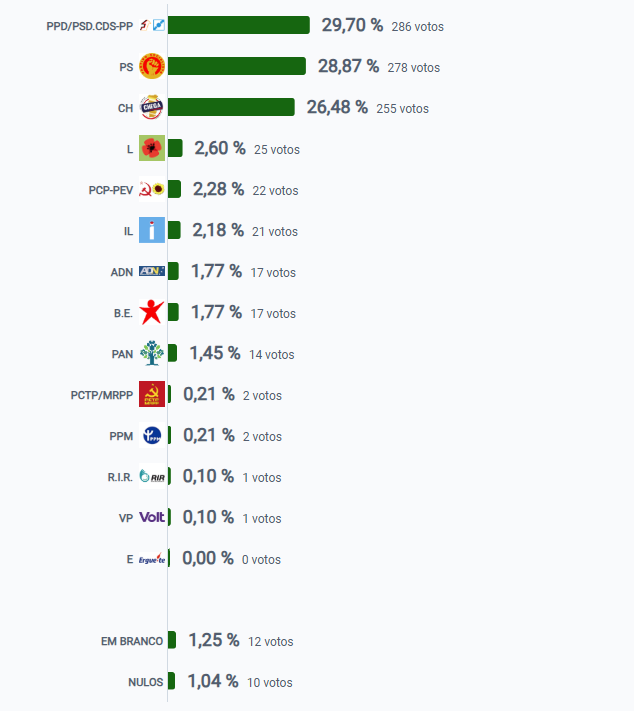 - PPD/PSD.CDS-PP – 286 votos (29,70%)