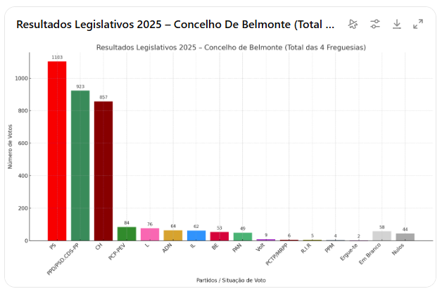 O resultado das legislativas em Belmonte marca um ponto de inflexão. O PS vence, mas com a menor margem de sempre sobre os seus adversários diretos. O PSD/CDS-PP consolida-se como alternativa séria de governo local, com duas vitórias em freguesias cruciais, enquanto o Chega se impõe como força mobilizadora, ameaçando romper o tradicional bipartidarismo local.