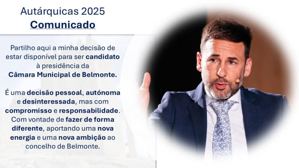 Num comunicado divulgado esta semana, o professor afirma que a decisão é “pessoal, autónoma e desinteressada”, assumida com “compromisso e responsabilidade”. Sublinha ainda a vontade de “fazer de forma diferente”, com “nova energia” e “nova ambição” para o concelho.