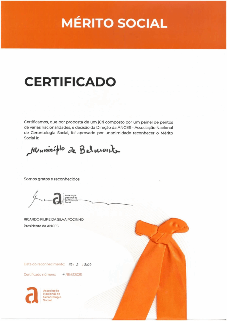 Foi ontem tornado público, através da página oficial da autarquia no Facebook, que a Câmara Municipal de Belmonte recebeu a Bandeira de Mérito Social 2025, uma distinção atribuída pela Associação Nacional de Gerontologia Social (ANGES).