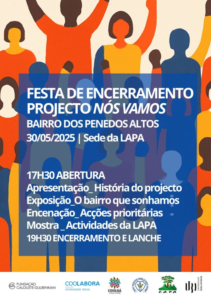 Na próxima sexta-feira, a partir das 17h30, o bairro dos Penedos Altos acolhe a festa de encerramento das atividades do projeto “Nós Vamos”, numa iniciativa coorganizada com a LAPA. O evento pretende assinalar o percurso feito até aqui, fazer um balanço e refletir sobre os próximos passos na promoção da democracia e da participação cívica no território.