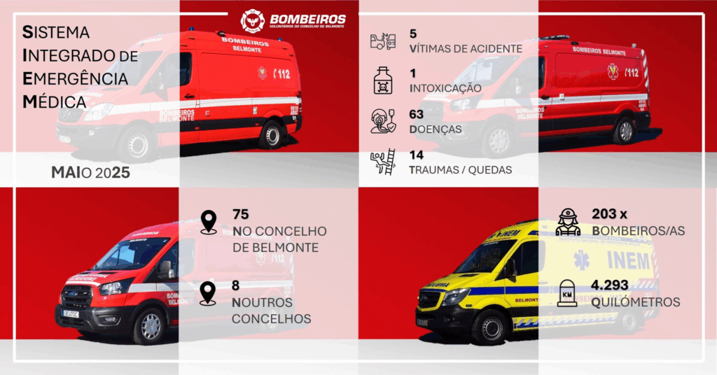 O Corpo de Bombeiros Voluntários do Concelho de Belmonte respondeu a 83 situações de emergência médica durante o mês de maio de 2025, no âmbito do Sistema Integrado de Emergência Médica (SIEM).