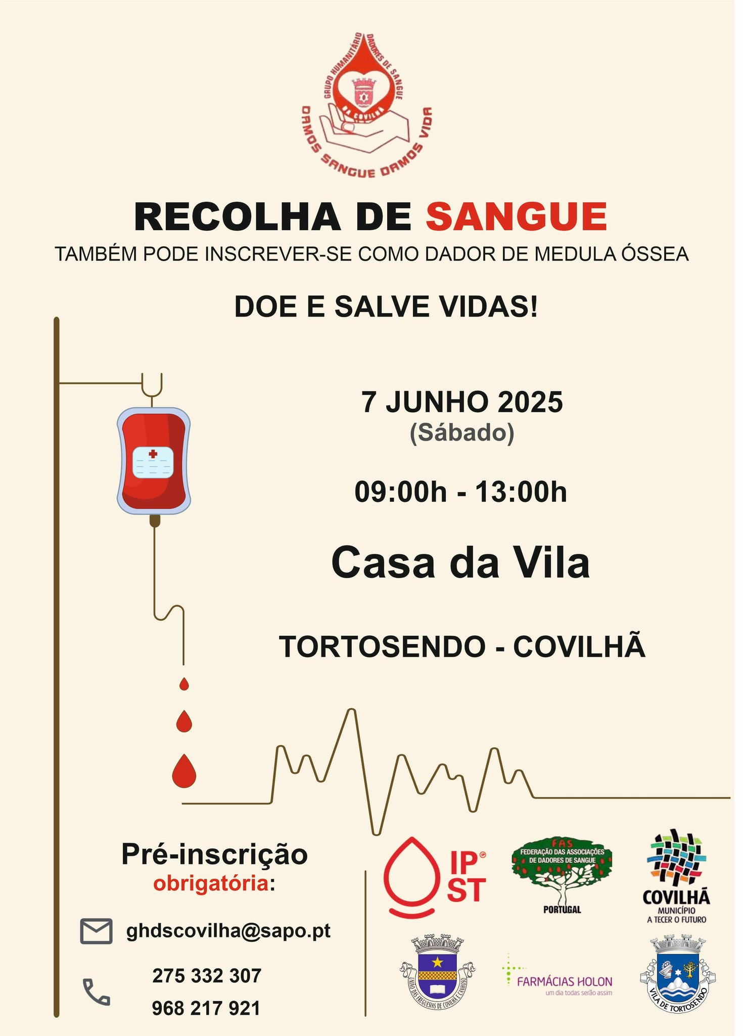 A organização conta com o apoio do Instituto Português do Sangue e da Transplantação, da Câmara Municipal da Covilhã, da Junta de Freguesia de Tortosendo, da Federação das Associações de Dadores de Sangue de Portugal, das Farmácias Holon e de outras entidades locais.