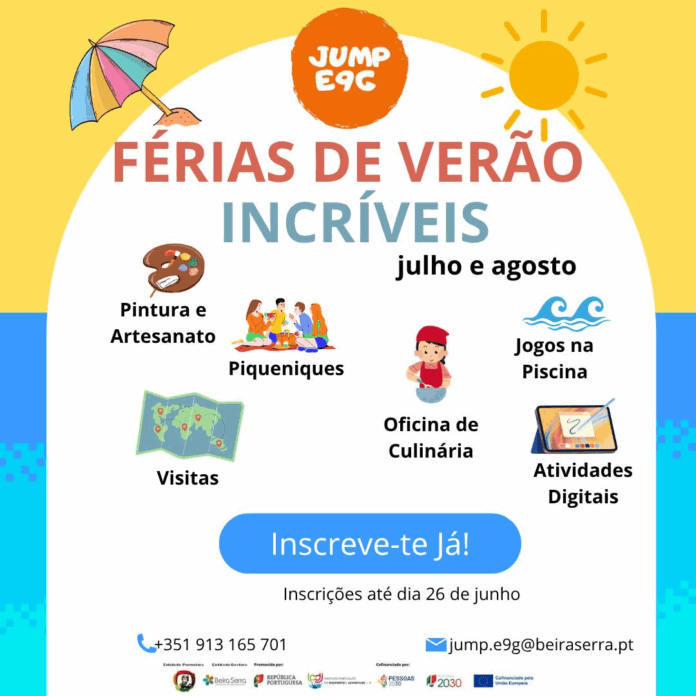 As inscrições decorrem até ao dia 26 de junho. Os interessados podem inscrever-se através do formulário online disponível ou obter mais informações através do número 913 165 701 ou pelo e-mail jump.e9g@beiraserra.pt.