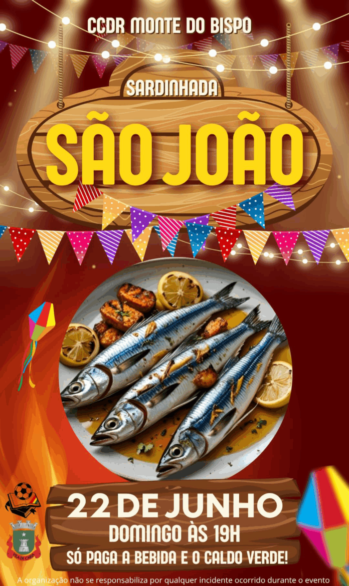 O CCDR Monte do Bispo está a organizar uma tradicional Sardinhada de São João para o próximo dia 22 de junho, um domingo. O evento terá início às 19h00.