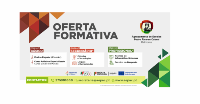 O Agrupamento de Escolas Pedro Álvares Cabral, situado em Belmonte, anunciou a sua oferta formativa para o próximo ano letivo, abrangendo os ensinos Básico, Secundário e Profissional. A divulgação destaca um leque variado de opções, desde o ensino artístico à formação técnica especializada, reforçando o seu papel na educação da região.
