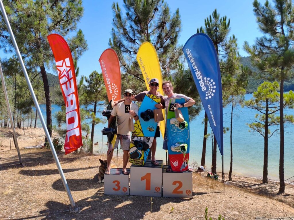 categoria de Wakesurf, David Brito conquistou o 1º lugar, com Chico Lopes e Xavier Segadães a conquistarem os lugares laterais.