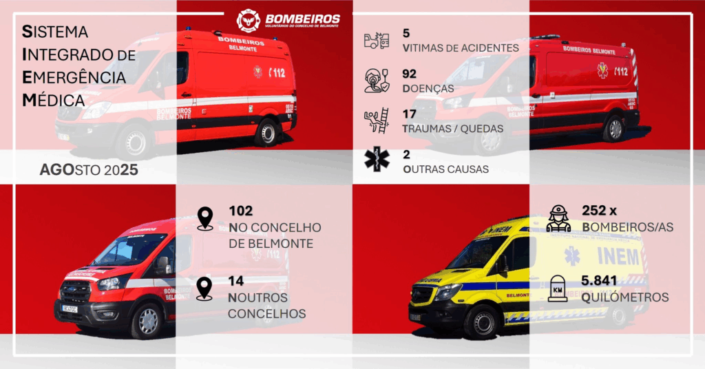 Paralelamente, o Sistema Integrado de Emergência Médica (SIEM) representou uma fatia significativa do trabalho, com 116 ativações. A maioria destas emergências (92) deveu-se a doença súbita, seguindo-se 17 casos de trauma ou quedas, 5 vítimas de acidentes e 2 ocorrências por outras causas. Para dar resposta a estes pedidos de socorro, foram mobilizados 252 operacionais, que viajaram 5.841 quilómetros. A grande maioria das emergências (102) ocorreu no concelho de Belmonte, enquanto 14 aconteceram em municípios vizinhos.