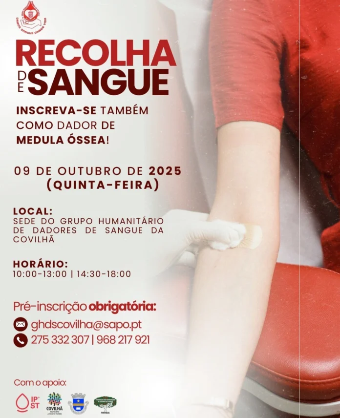 A participação na recolha requer pré-inscrição obrigatória, que pode ser efetuada através dos contactos telefónicos 275 332 307 e 968 217 921, ou pelo email ghdscovilha@sapo.pt. A iniciativa conta com o apoio do Instituto Português do Sangue e da Transplantação (IPST) e da Câmara Municipal da Covilhã.
