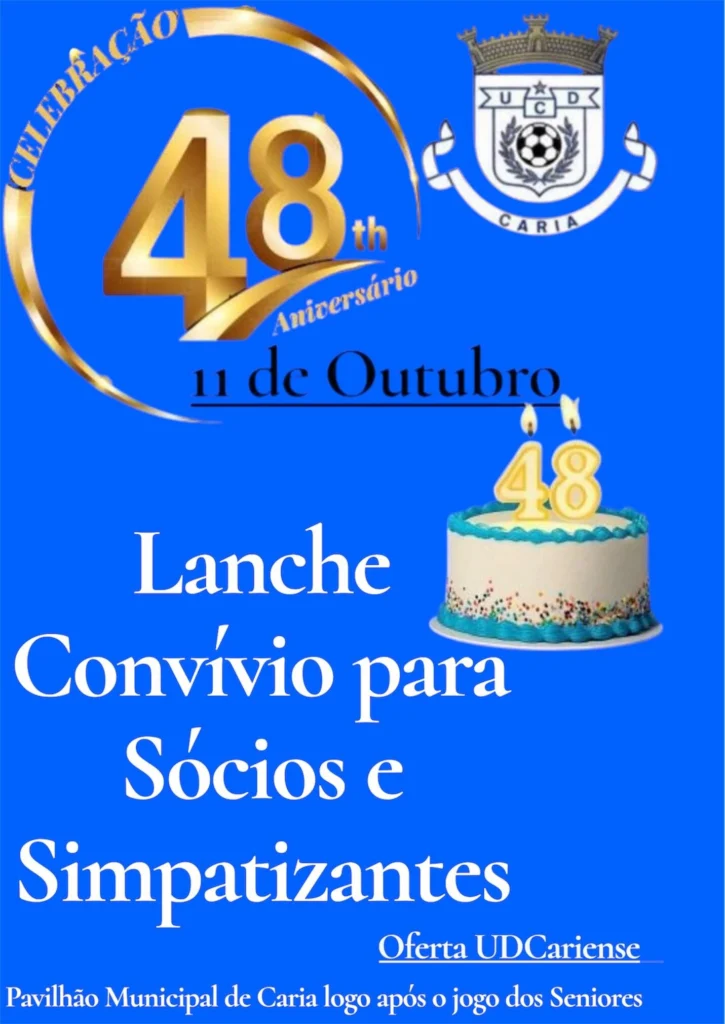 A União Desportiva Cariense (UDC) vai assinalar o seu 48.º aniversário no próximo sábado, 11 de outubro, com um lanche convívio destinado a todos os seus sócios e simpatizantes.