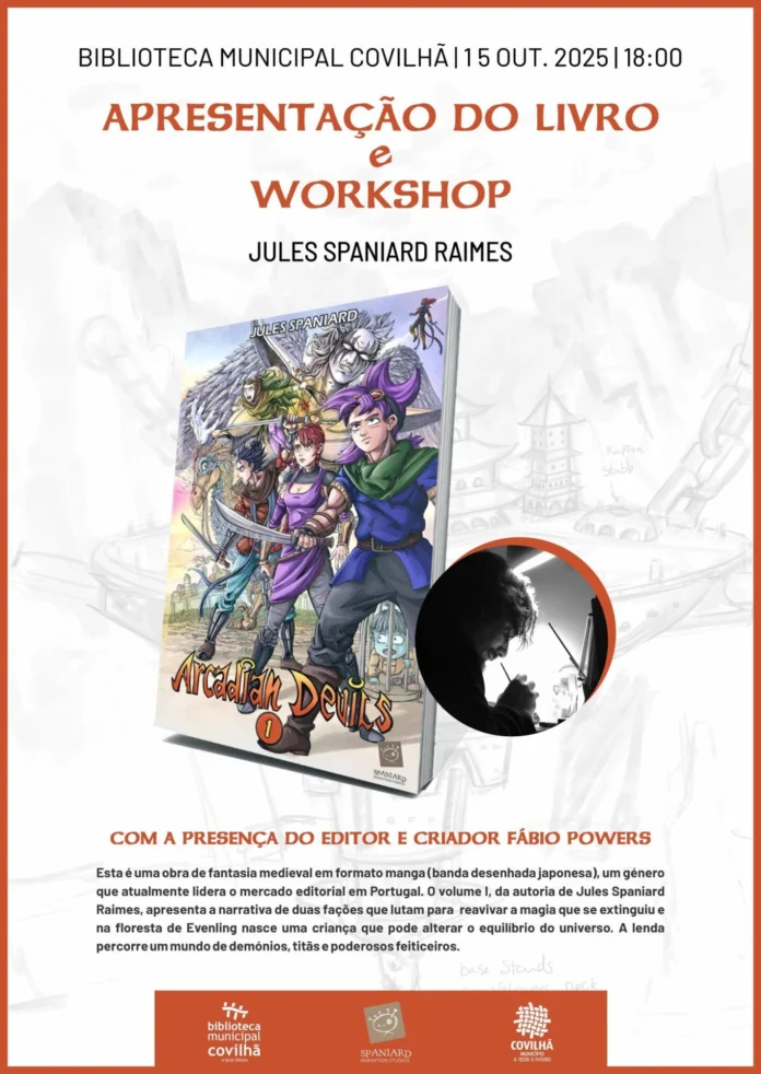 A Biblioteca Municipal da Covilhã vai acolher, na próxima quarta-feira, dia 15 de outubro, a apresentação do livro de mangá “Arcadian Devils”, da autoria de Jules Spaniard Raimes. O evento, que terá início às 18h00, contará ainda com um workshop e com a presença do editor e criador Fábio Powers.