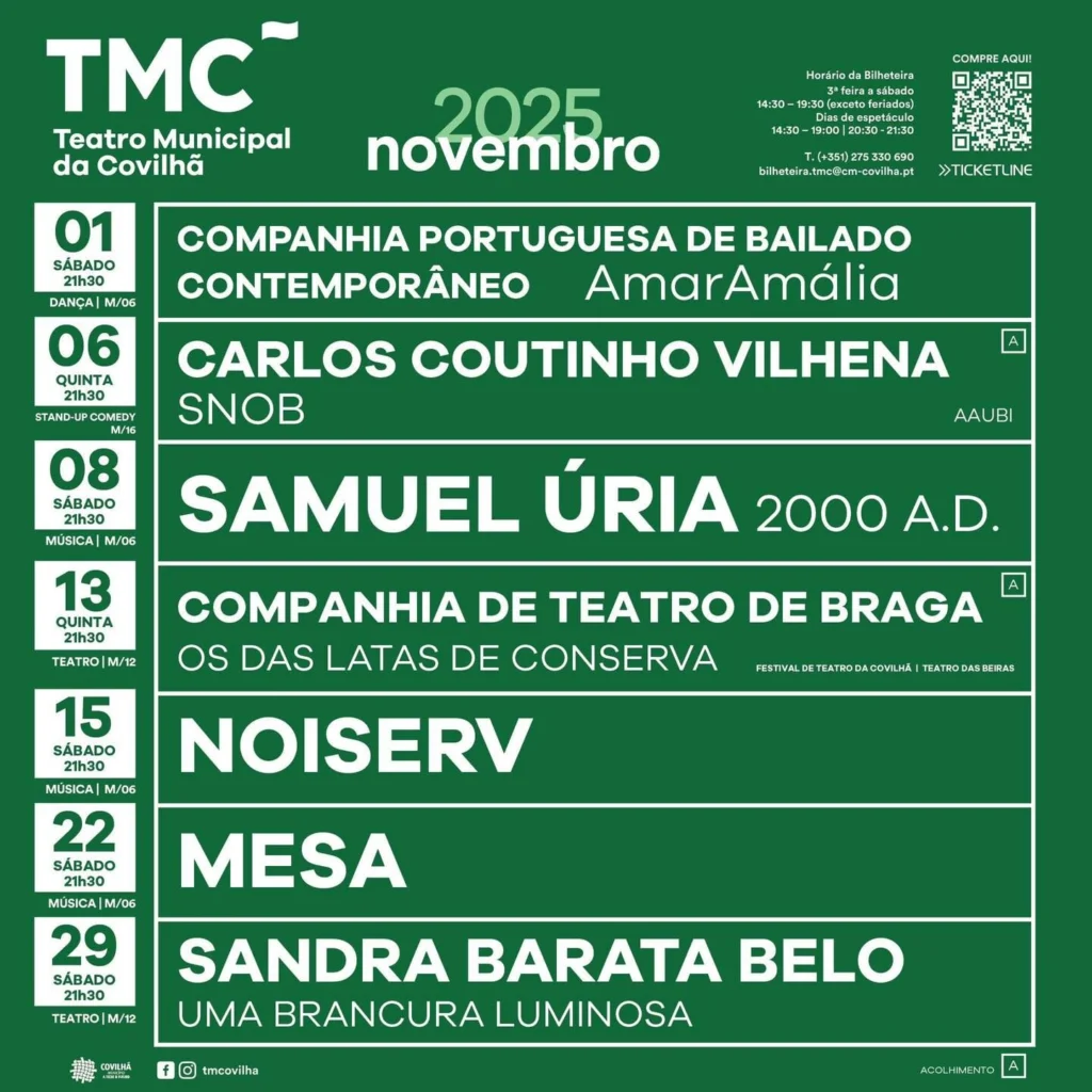 Programação do Teatro Municipal da Covilhã em Novembro de 2025