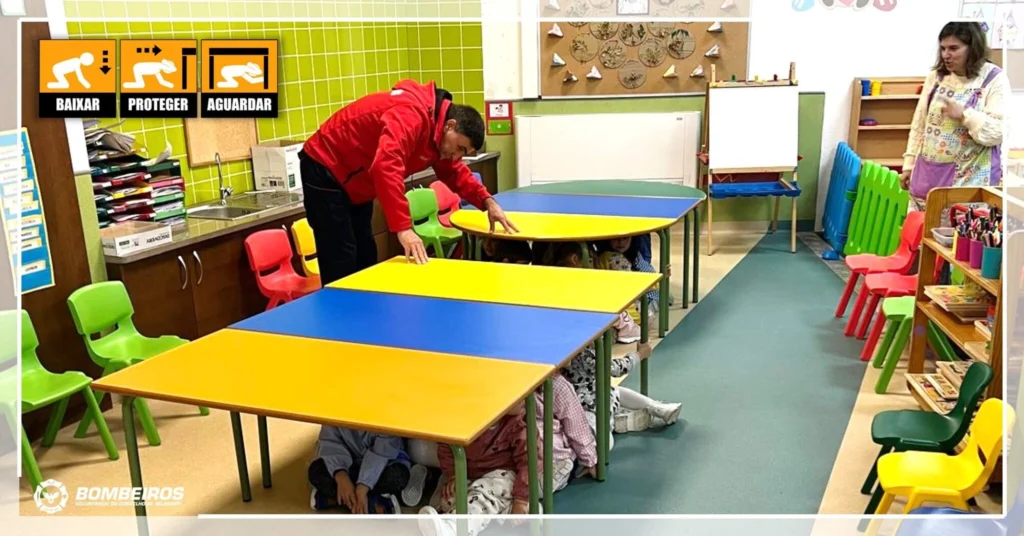 A ação teve como objetivo principal treinar a comunidade escolar sobre como agir em caso de sismo, relembrando os três gestos fundamentais de autoproteção: Baixar, Proteger e Aguardar.