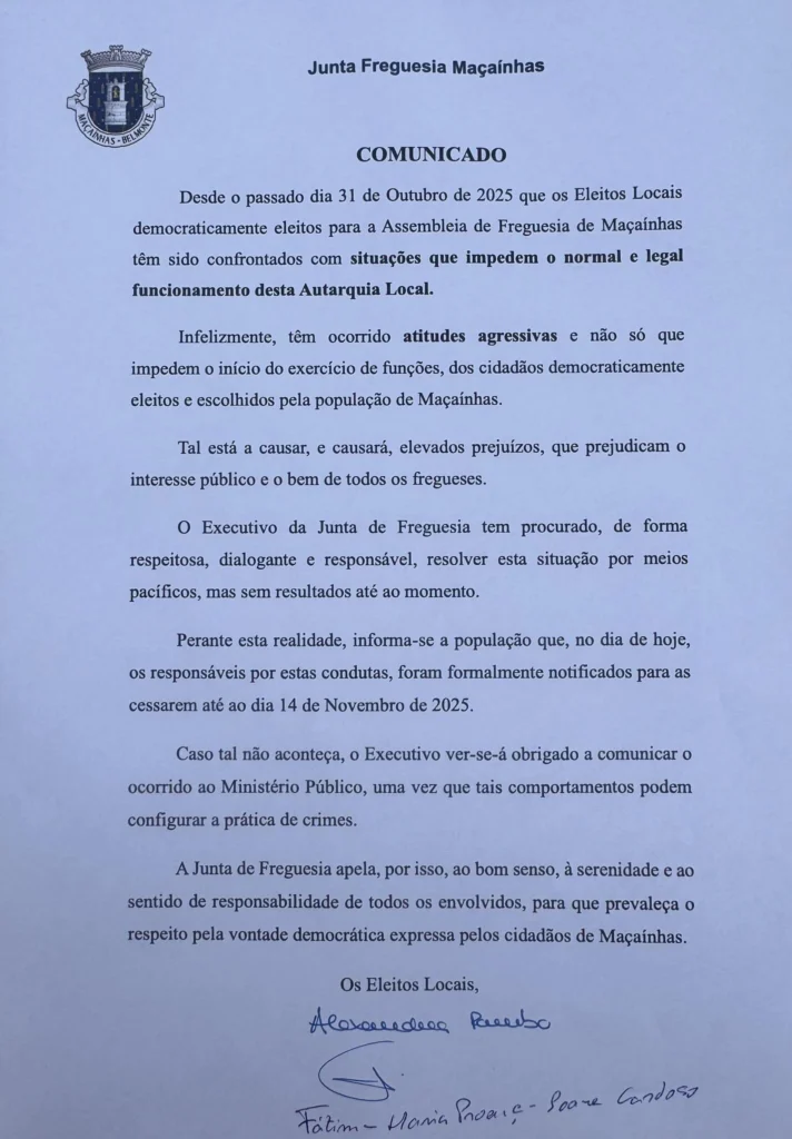 A Junta de Freguesia apela “ao bom senso, à serenidade e ao sentido de responsabilidade de todos os envolvidos, para que prevaleça o respeito pela vontade democrática expressa pelos cidadãos de Maçainhas”.