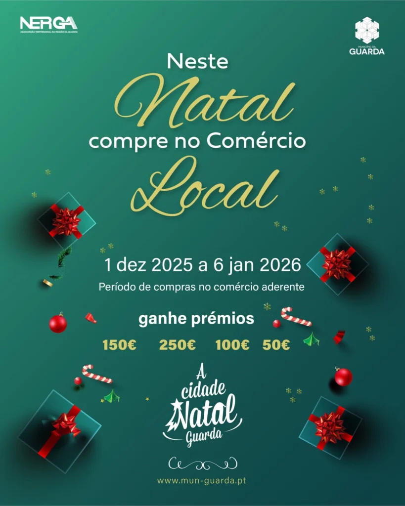 O Município da Guarda e o NERGA – Associação Empresarial da Região da Guarda, promovem em conjunto o Concurso “Neste Natal, Compre no Comércio Local”. A iniciativa arranca já no dia 1 de dezembro e estende-se até 6 de janeiro de 2026.