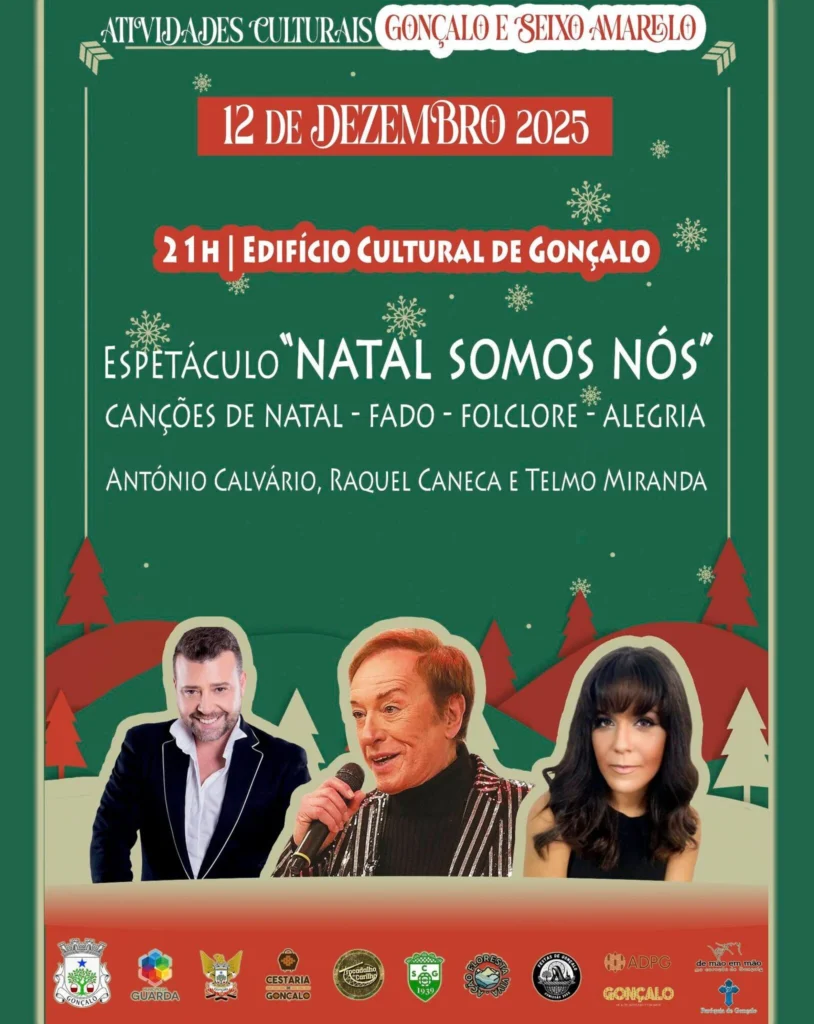 O Edifício Cultural de Gonçalo recebe na próxima sexta-feira, 12 de dezembro, às 21h, o espetáculo “Natal Somos Nós”, integrado nas Atividades Culturais Gonçalo e Seixo Amarelo. A iniciativa promete uma noite de festa e partilha, com canções de Natal, fado, folclore e muita alegria natalícia.