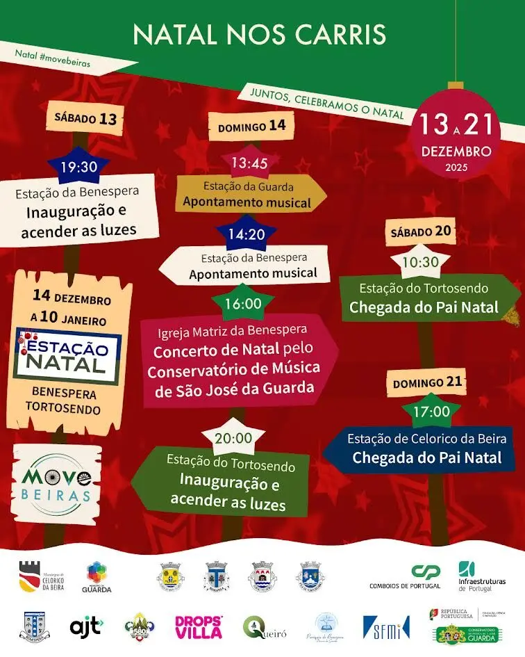 De 13 de dezembro a 10 de janeiro, a Associação Move Beiras promove o programa “Natal nos Carris”, que leva a magia da quadra às linhas ferroviárias da região, com duas Estações Natal – Benespera e Tortosendo – e vários momentos de animação, música e convívio em família.