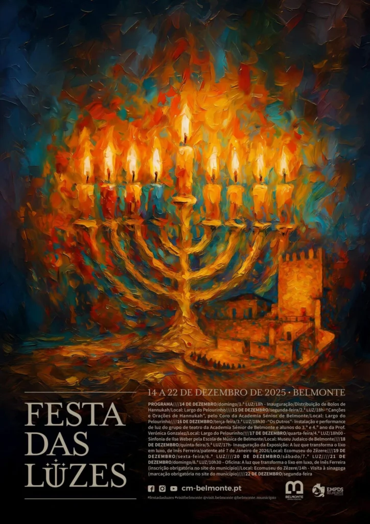 Belmonte volta a associar-se à celebração da Festa das Luzes, que decorre no concelho entre 14 e 22 de dezembro, com um conjunto de iniciativas que reforçam a identidade judaica local e convidam a comunidade a “viver” a Hanukkah. Ao longo de vários dias, diferentes espaços da vila recebem momentos de música, teatro, oração e convívio, em torno da memória e da cultura judaica que marcam a história de Belmonte.