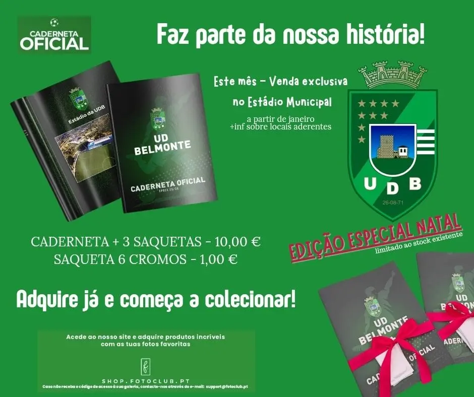 A UD Belmonte já colocou à venda a sua Caderneta Oficial, numa edição especial de Natal, convidando os adeptos e colecionadores a reunirem cromos e a registarem a história do clube.