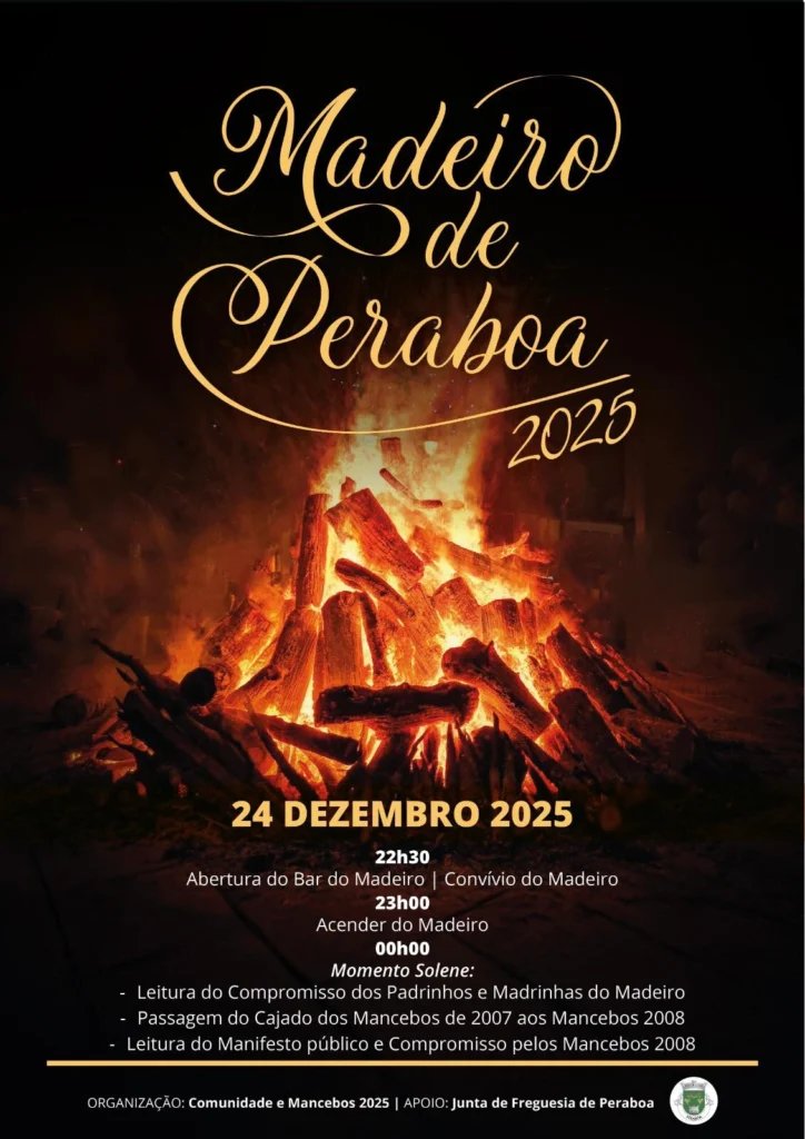 O Madeiro de Peraboa realiza-se na quarta-feira, 24 de dezembro, com início às 22h30, com a abertura do Bar do Madeiro e o convívio.