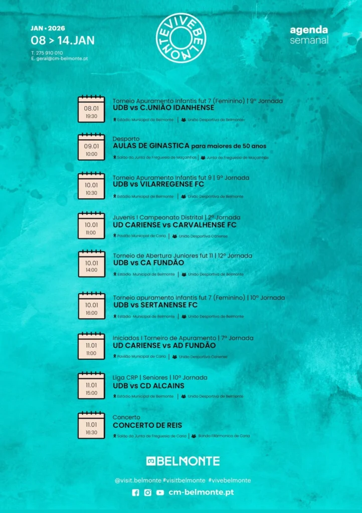 O Município de Belmonte divulgou a agenda semanal com várias iniciativas desportivas e culturais, a partir de sexta feira, 9 de janeiro, em diferentes locais do concelho.