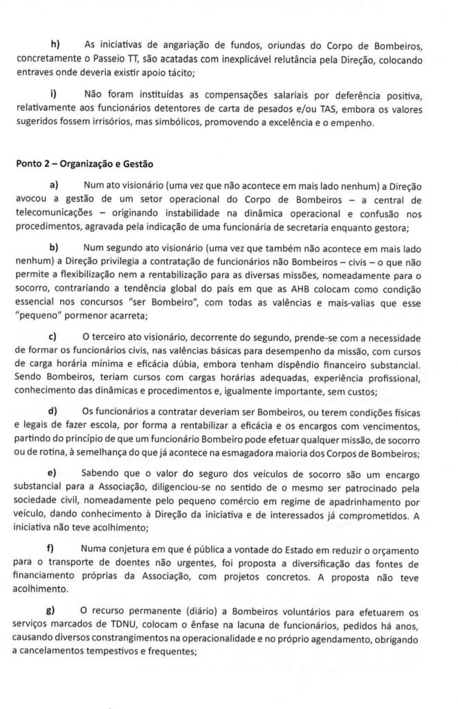 O documento aponta ainda falhas na política de motivação e compensação, nomeadamente a inexistência de suplementos salariais simbólicos para funcionários com carta de pesados e/ou TAS, bem como a ausência de uma data fixa para pagamento de salários e gratificações, situação que oscila de mês para mês. São também criticadas a falta de iniciativas sociais, culturais ou de angariação de fundos e a inexistência de campanhas de captação de novos associados, consideradas essenciais para a sustentabilidade financeira da associação.