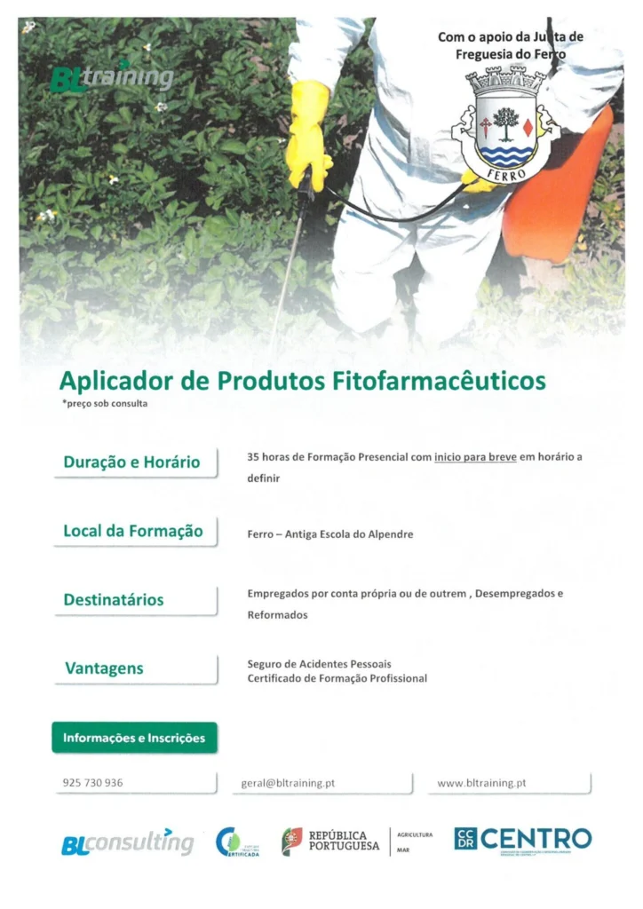Estão abertas as inscrições para duas formações presenciais na freguesia do Ferro, com o apoio da Junta de Freguesia, dinamizadas pela BLtraining. As ações decorrem no Ferro, na Antiga Escola do Alpendre, com início para breve e horário a definir, sendo o preço sob consulta.