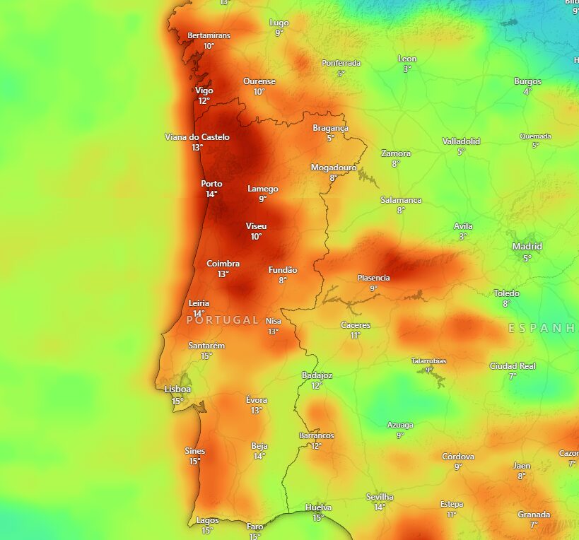 Segundo o modelo europeu de previsão meteorológica, Portugal deverá registar as anomalias de precipitação mais intensas de toda a Europa nos próximos dias. Em várias zonas do Norte e Centro, os acumulados semanais de chuva poderão ultrapassar largamente os valores médios, com algumas regiões a registarem mais de 200 milímetros e, pontualmente, acima dos 300 milímetros.