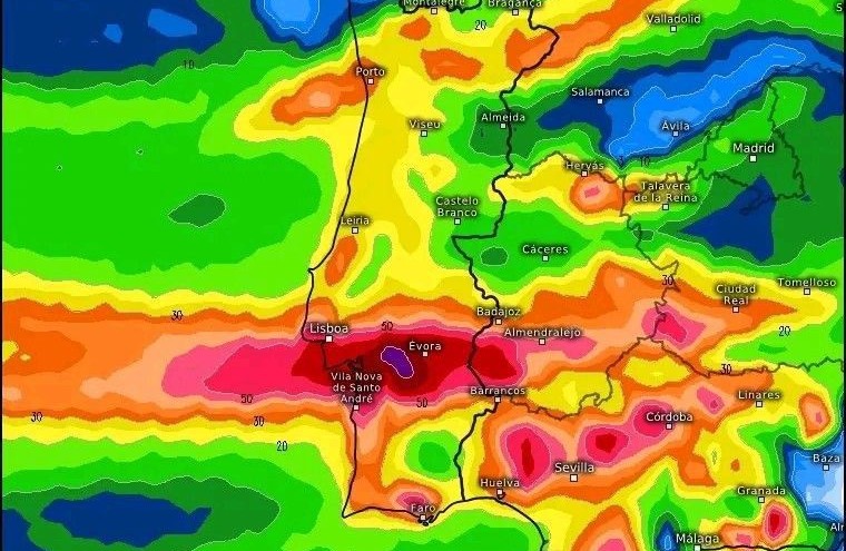 De acordo com as previsões dos modelos GEM e ECMWF, o cenário é de risco elevado, sobretudo no litoral alentejano, Baixo Alentejo e distrito de Setúbal, regiões onde se esperam os maiores acumulados de precipitação. Em apenas 24 horas poderão registar-se entre 60 e 100 milímetros de chuva, valores que, em locais como Évora, correspondem sensivelmente à média de um mês inteiro.