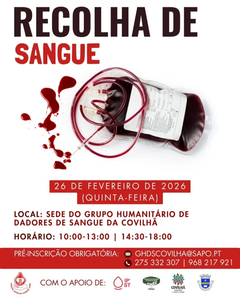 Recolha de sangue marcada para 26 de fevereiro na Covilhã