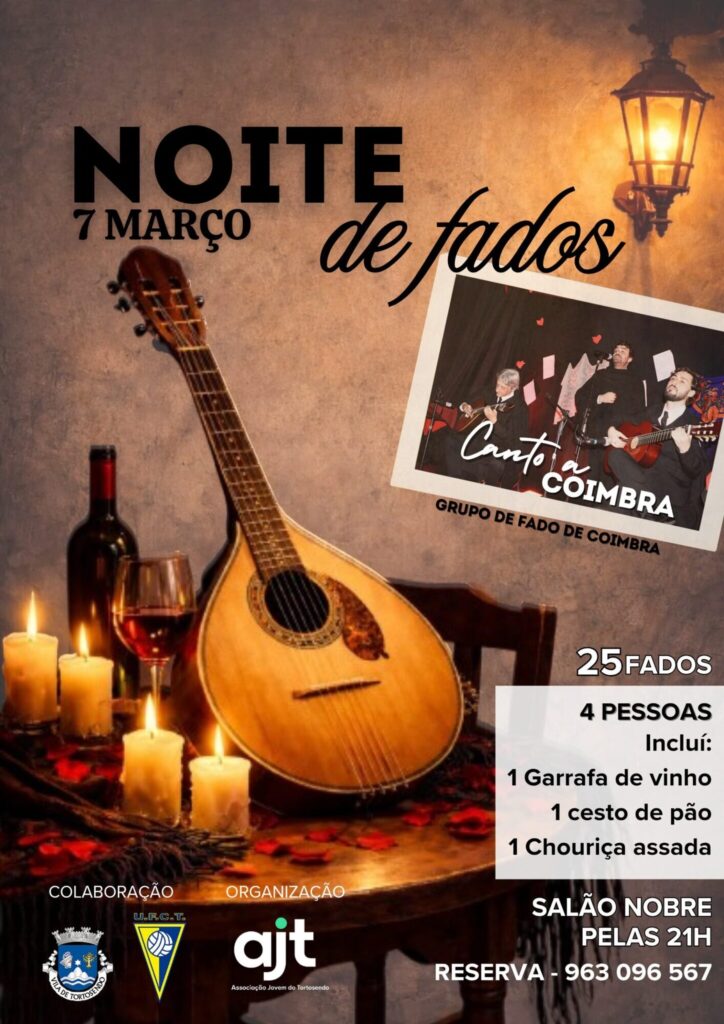 Realiza-se no dia 7 de março, pelas 21h, no Salão Nobre do Unidos Futebol Clube do Tortosendo, uma Noite de Fados com atuação do Grupo de Fado de Coimbra.