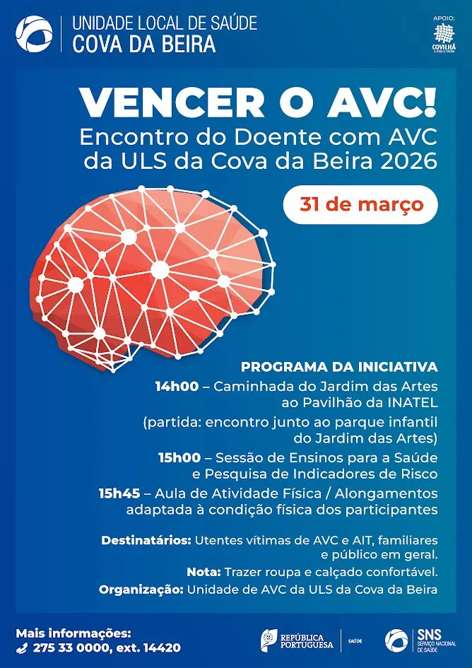 A Unidade Local de Saúde da Cova da Beira vai assinalar o Dia Nacional do Doente com AVC, celebrado a 31 de março, com a realização do Encontro do Doente com AVC, uma iniciativa que coloca a prevenção, a reabilitação e a proximidade com a comunidade no centro da ação.