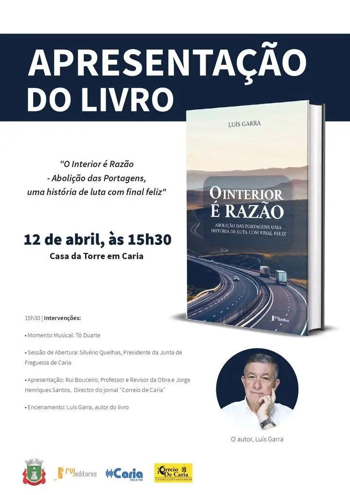 A Casa da Torre, em Caria, recebe no próximo domingo, 12 de abril, às 15h30, a apresentação do livro “O Interior é Razão: Abolição das Portagens, uma história de luta com final feliz”, da autoria de Luís Garra.
