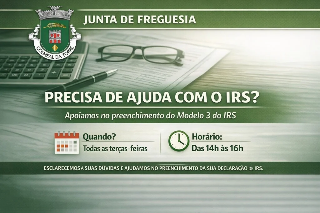 A Junta de Freguesia de Colmeal da Torre está a disponibilizar apoio no preenchimento do Modelo 3 do IRS, com atendimento destinado ao esclarecimento de dúvidas e ajuda na entrega da declaração.