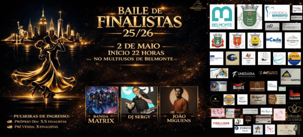 O Multiusos de Belmonte recebe no sábado, 2 de maio, a edição 25/26 do Baile de Finalistas, com início marcado para as 22:00.