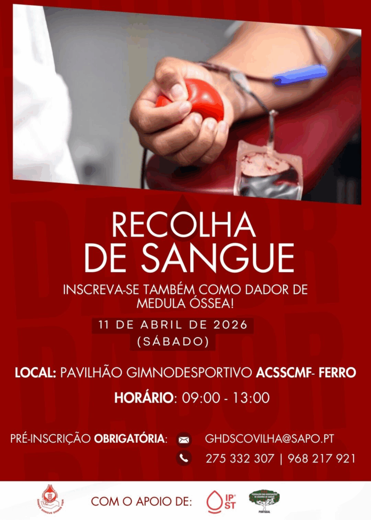 Esta semana há duas oportunidades para doar sangue, com ações marcadas para quinta-feira, na Covilhã, e para sábado, 11 de abril, na Vila do Ferro. A iniciativa apela à participação da população, com a mensagem de que doar sangue é uma forma concreta de ajudar a salvar vidas.